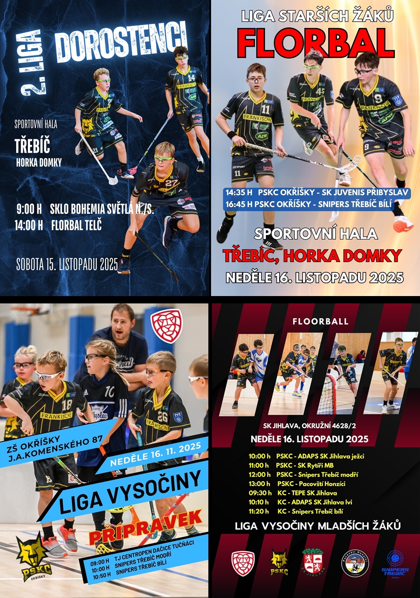 Dorostenci cestovali do Pelhřimova v prořídlé sestavě, mladších žáků bylo na dva týmy v Okříškách více než dost, jen přípravka byla v Třebíči díky hráčům z mini přípravky v ideálním počtu.